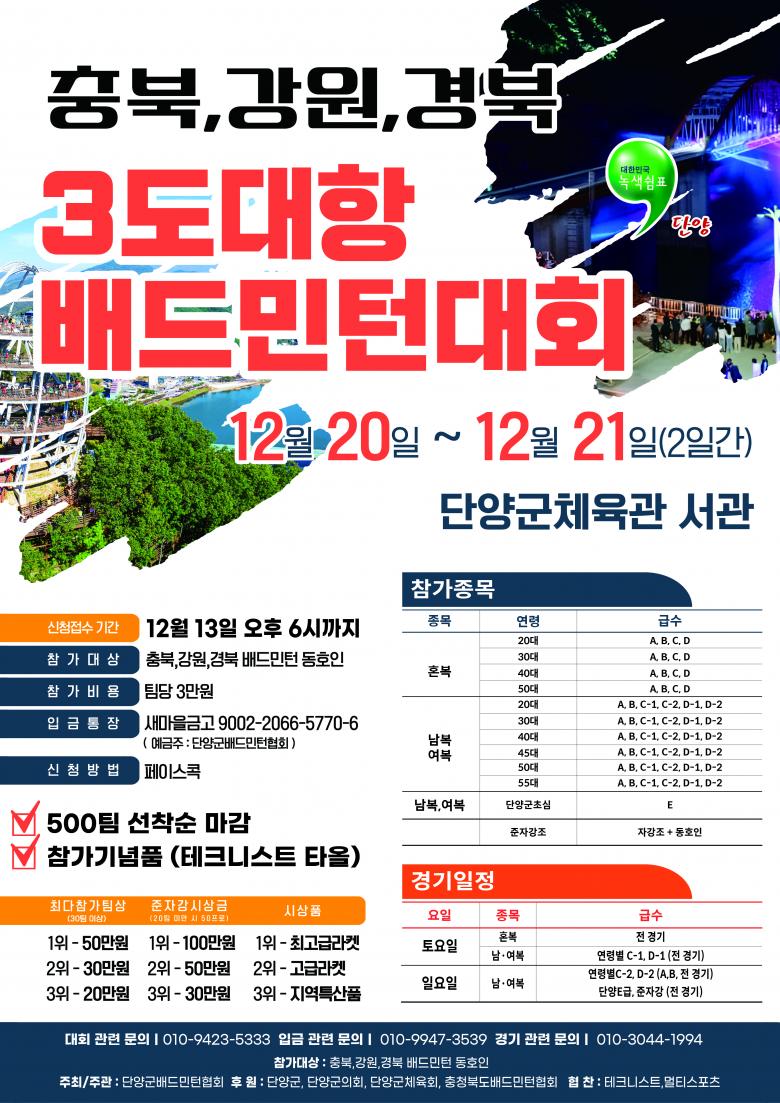 | 대회요강 | 3도대항(충북,강원,경북) 배드민턴대회 참가요강(2025년) ver_최종.pdf | |